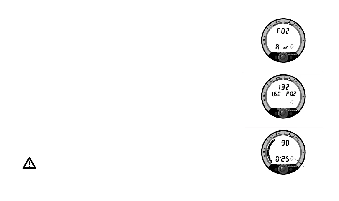advance to the PO2 display (Fig. 3) that shows the Maximum Depth that can be