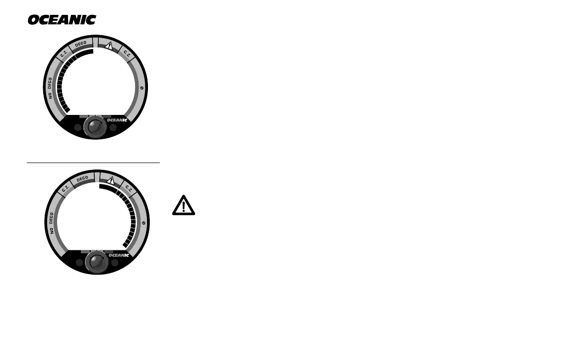 DECO), a yellow Caution zone (C.Z.), and a red Decompression zone (DECO).