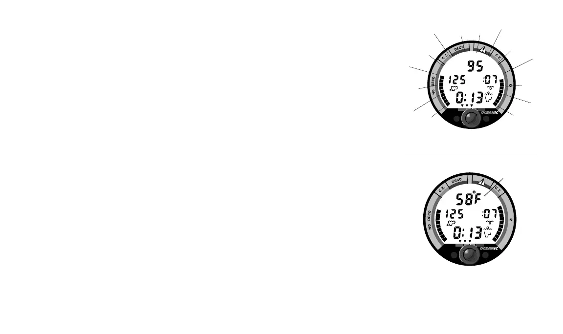 When the control button is depressed during a dive, ambient temperature will