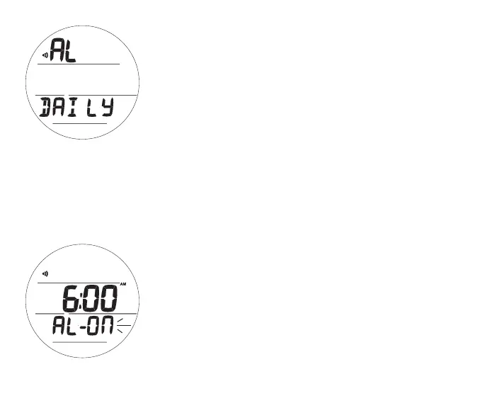 > Graphics AL and DAILY with alarm (speaker) icon