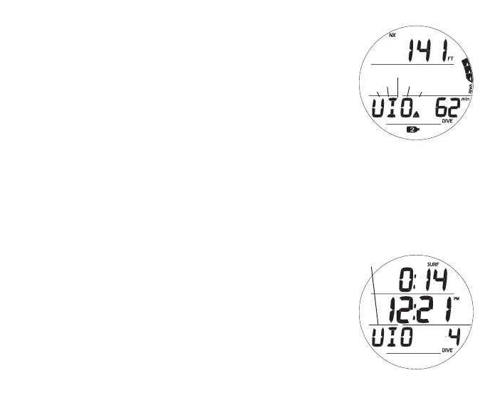 10 minutes with Surface Interval Time displayed in place of Cur-