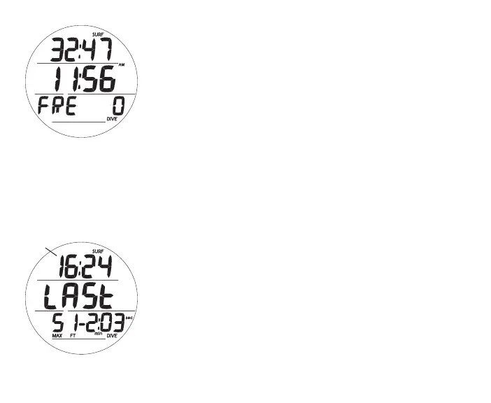 > SI (min:sec or hr:min) with SURF icon, prior to Last dive