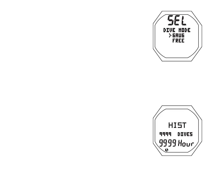 S (< 2 sec) - to access Set Dive Mode while the selection