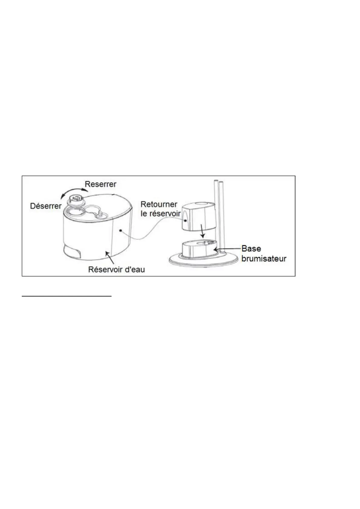 - Retirez le réservoir de la base brumisateur. (Voir figure comme ci-après)
