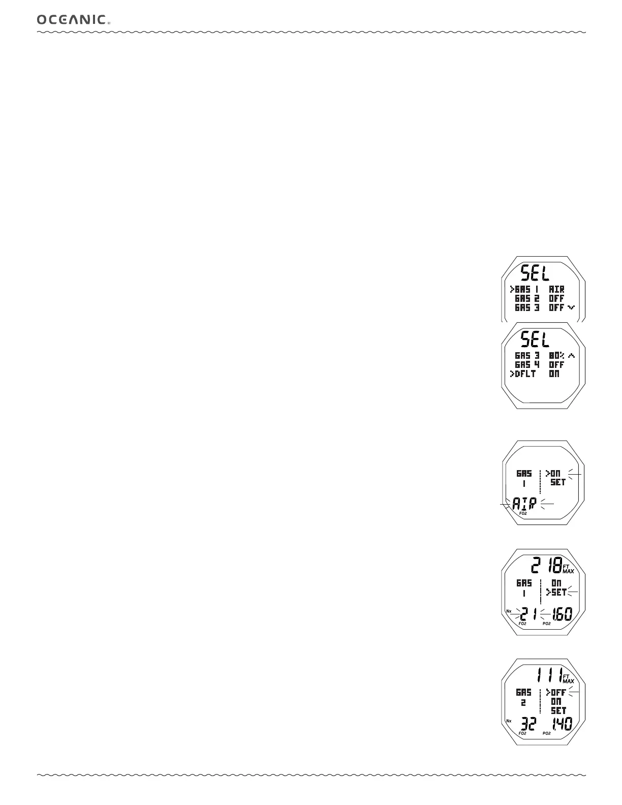 > Once any Gas is set for Nitrox, any other Gas set for Air will automatically be set to 21%.