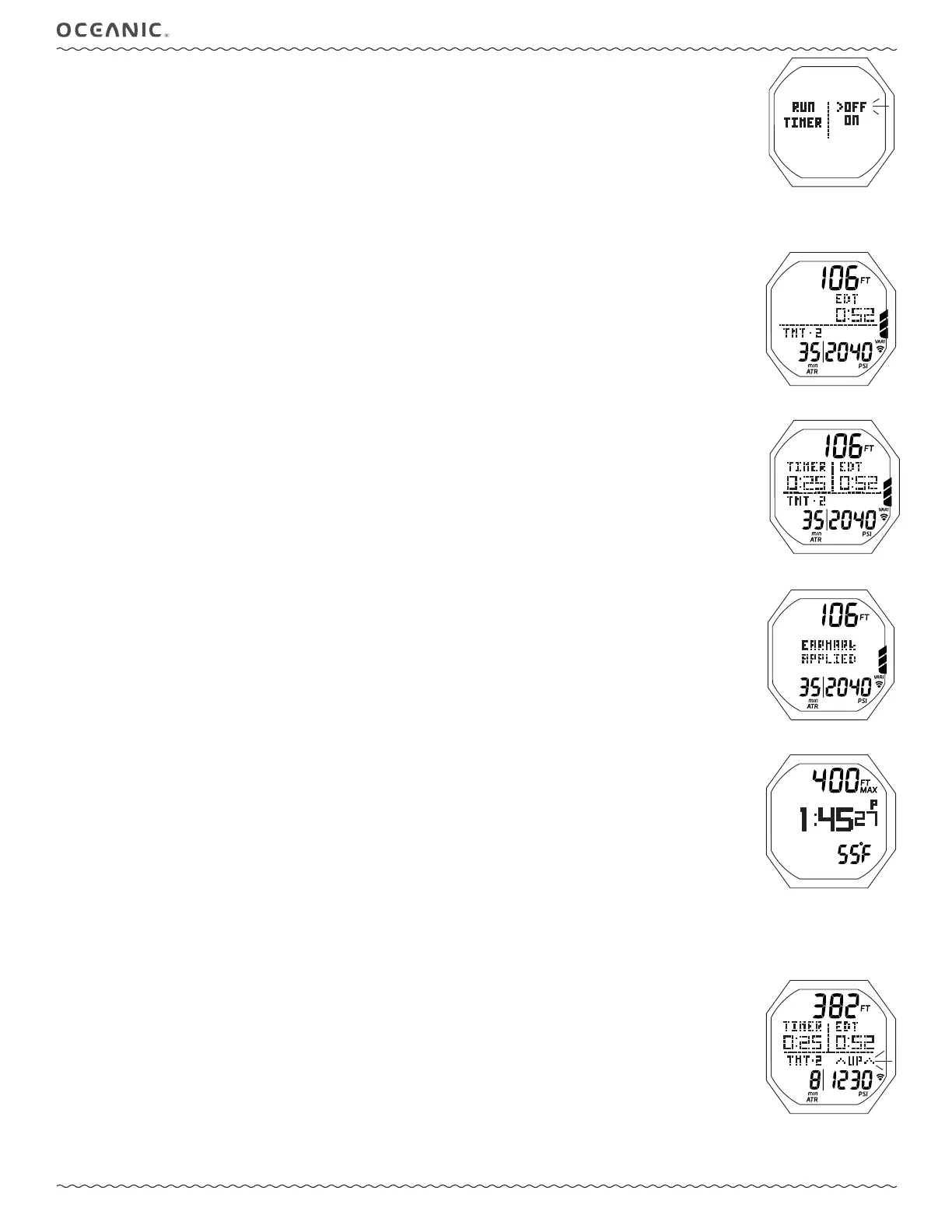 *Selecting ON will enable the Timer, not start it. That is accomplished while in Dive Mode.