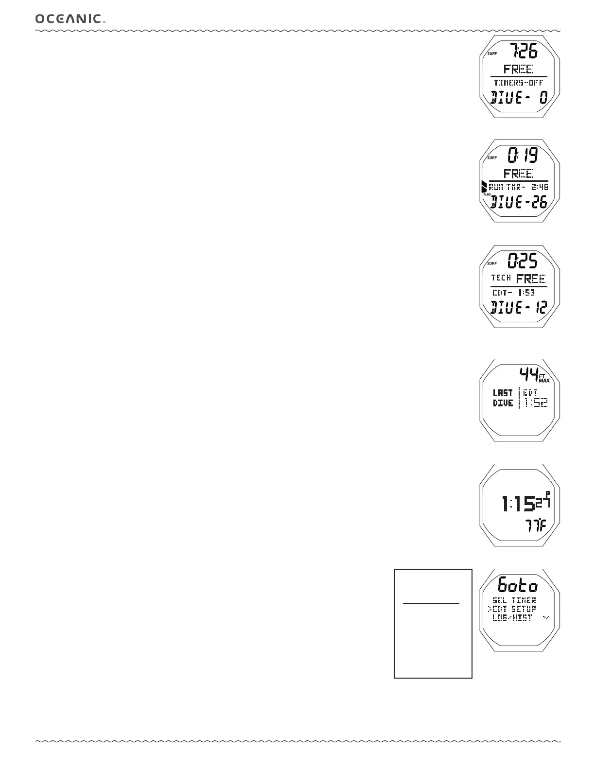 > Graphic DIVE - with number of dives completed during that set of repetitive dives, up to 99 (0 if no dive made yet).