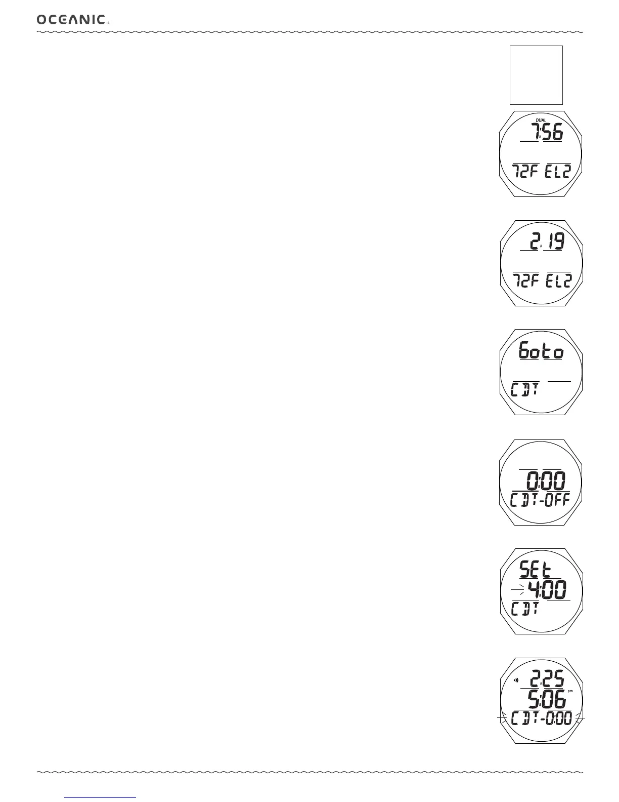 Upon accessing a dive computer mode, Watch CDT operation will be terminated and the time reset to the previous setting.