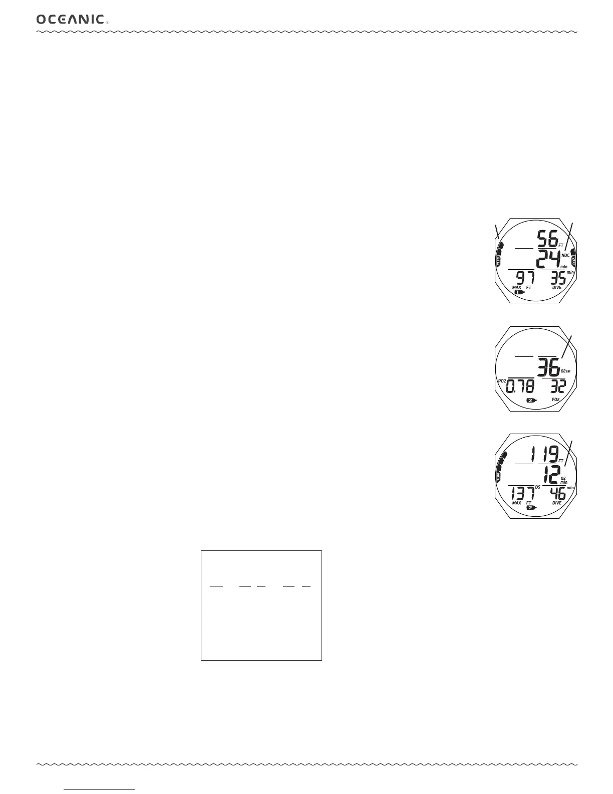 • In the event that you enter Deco during the dive, complete the Deco obligation, then descend below 30 FT (9 M); the