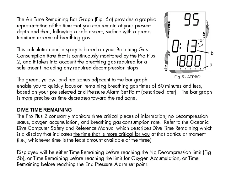 Displayed will be either Time Remaining before reaching the No Decompression limit (Fig.