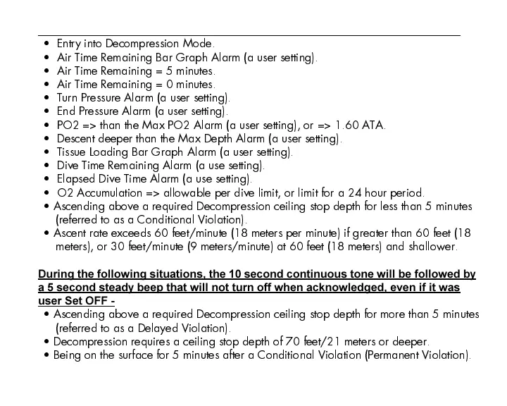 PO2 => than the Max PO2 Alarm (a user setting), or => 1.60 ATA.
