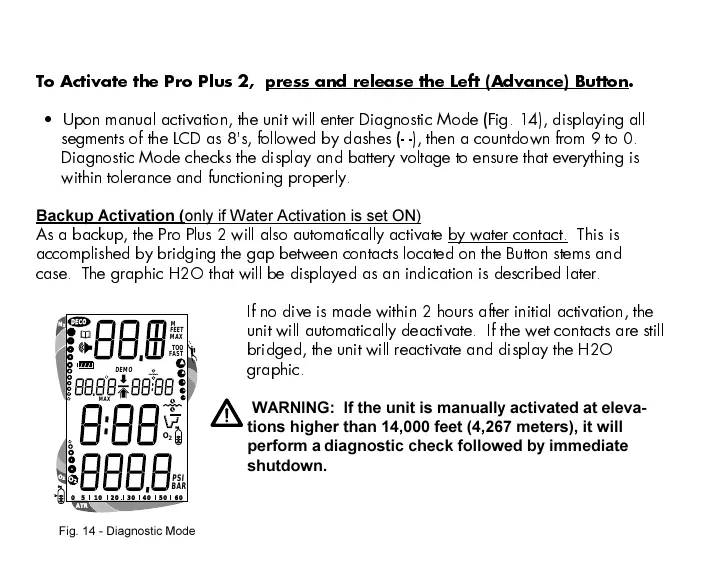 Upon manual activation, the unit will enter Diagnostic Mode (Fig. 14), displaying all