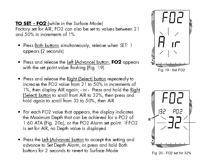 1.60 ATA (Fig. 20a), or the PO2 Alarm set point. If FO2