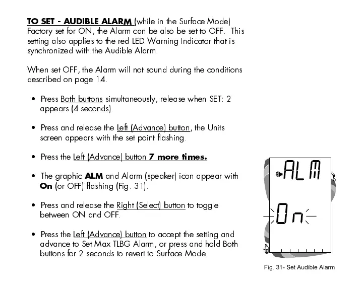 Factory set for ON, the Alarm can be also be set to OFF. This