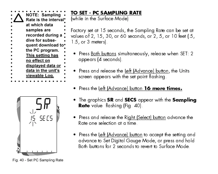 Factory set at 15 seconds, the Sampling Rate can be set at