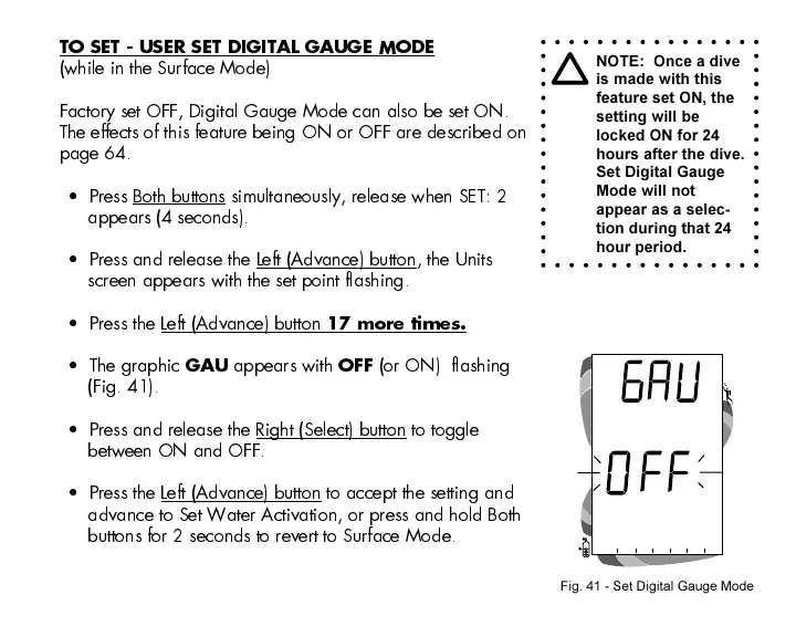 Fig. 41 - Set Digital Gauge Mode
