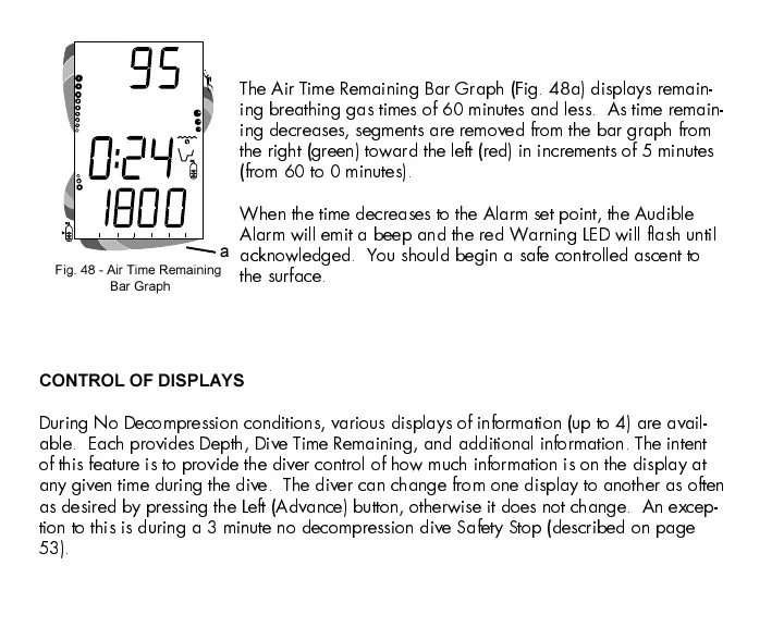 The Air Time Remaining Bar Graph (Fig. 48a) displays remain-
