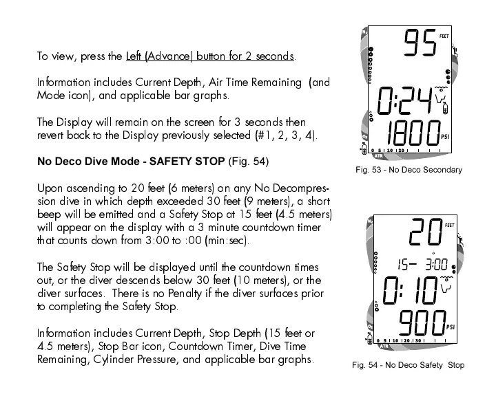 No Deco Dive Mode - SAFETY STOP (Fig. 54)