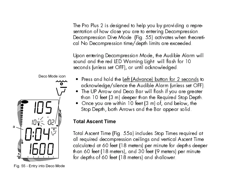 Decompression Dive Mode (Fig. 55) activates when theoreti-