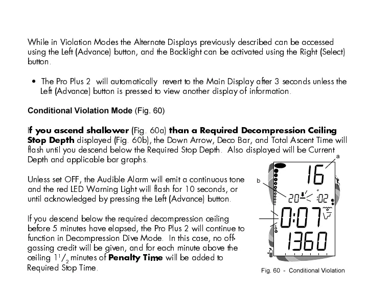 displayed (Fig. 60b), the Down Arrow, Deco Bar, and Total Ascent Time will