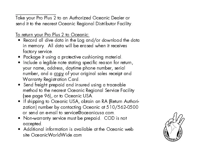 To return your Pro Plus 2 to Oceanic:
