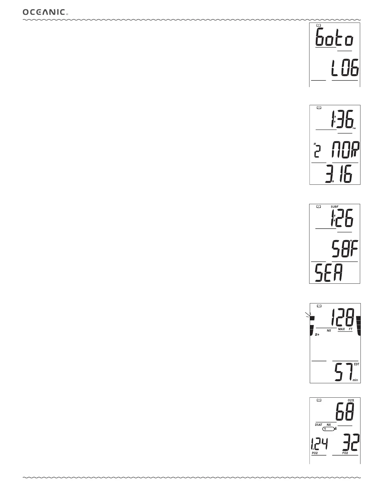 • S (< 2 sec) to access Data 1 for the dive Preview displayed.