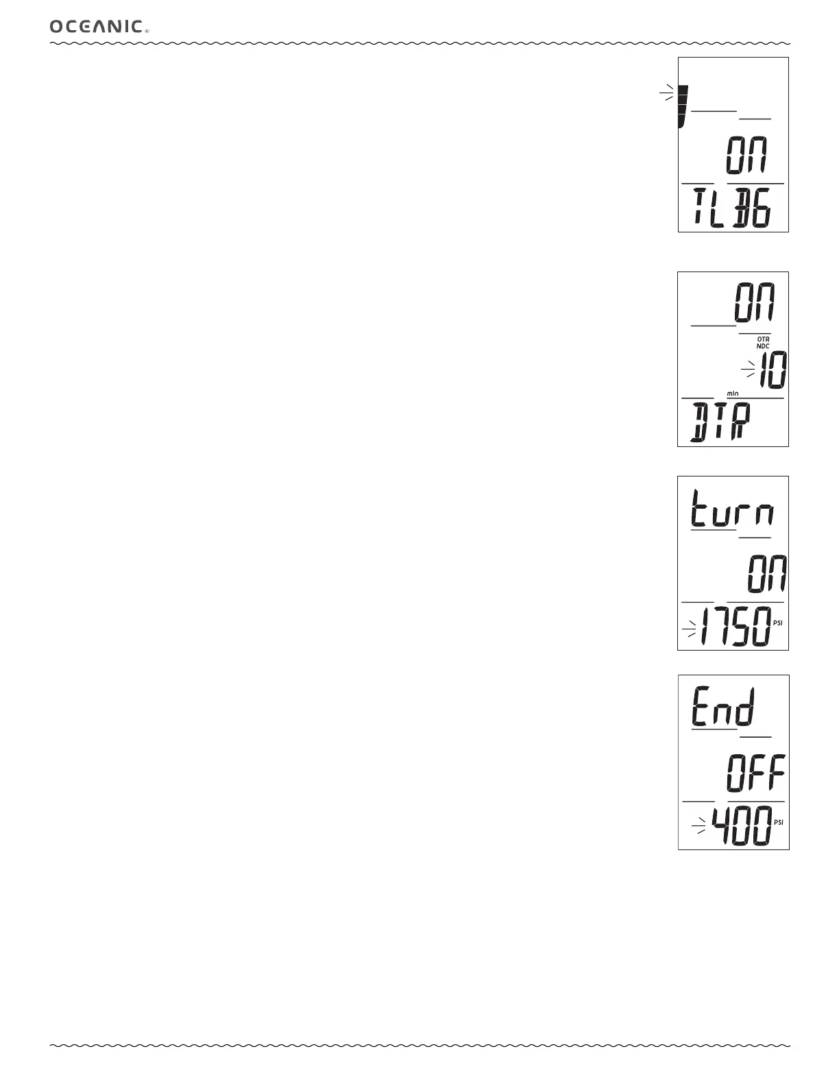 • S (< 2 sec) to save the selection and flash the Time digits, if Set is saved; or access Set Turn Alarm, if OFF or ON is saved.