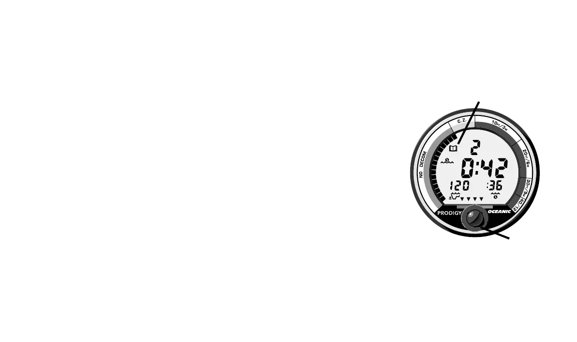in Gauge Mode on subsequent dives. The PRODIGY removes displays that no