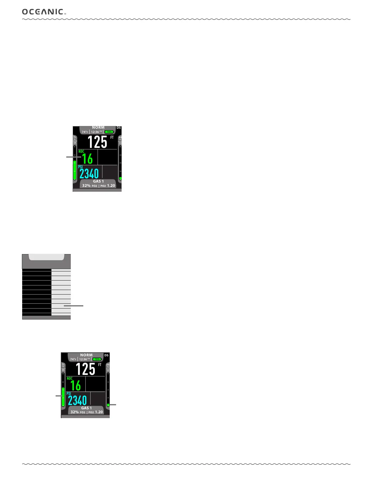 DTR on the No Decompression Dive Main screen. The time being displayed will be identied by the NDC (no decompression) or OTR (Oxygen Time