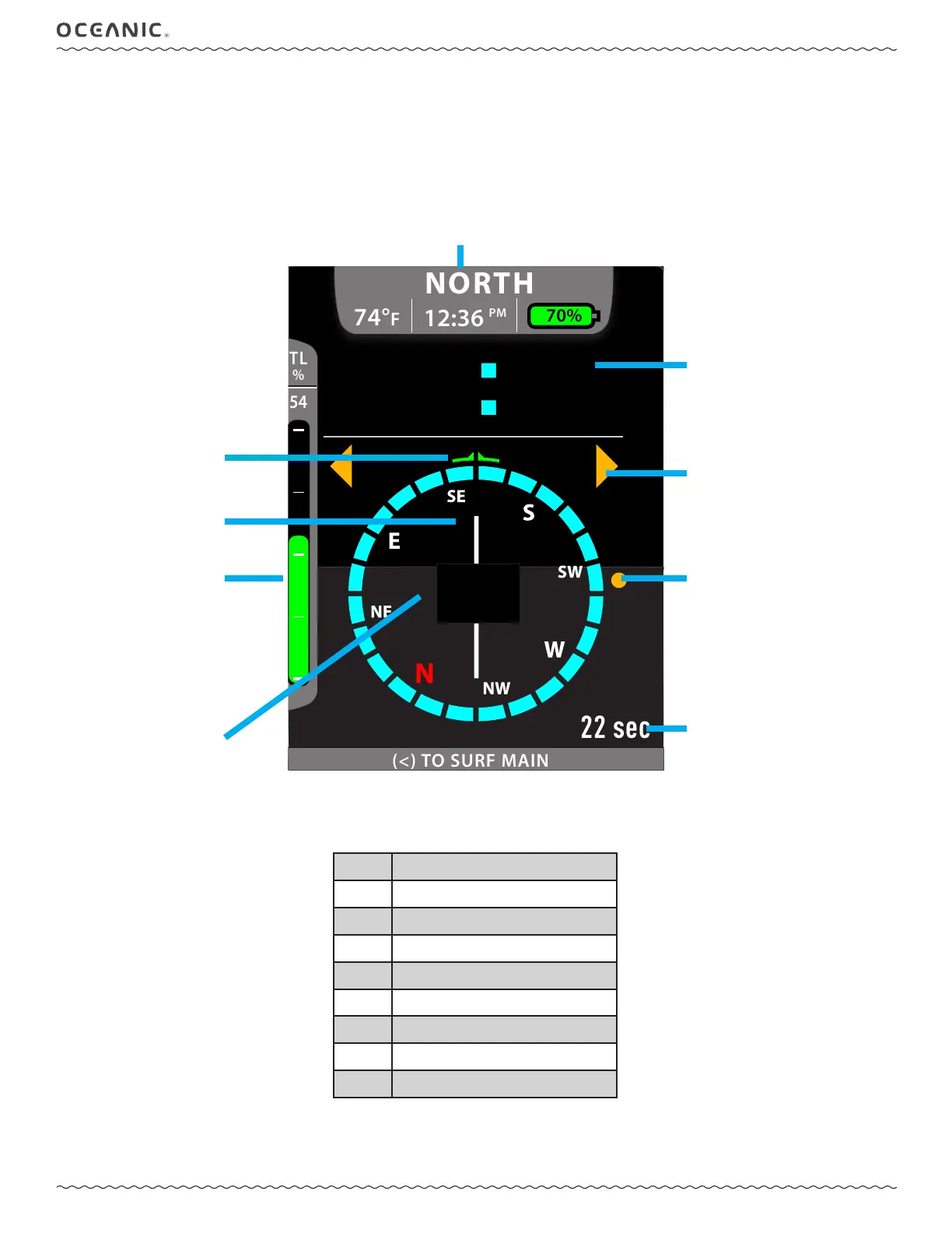 Oceanic PROPLUS X - COMPASS DISPLAY ICONS