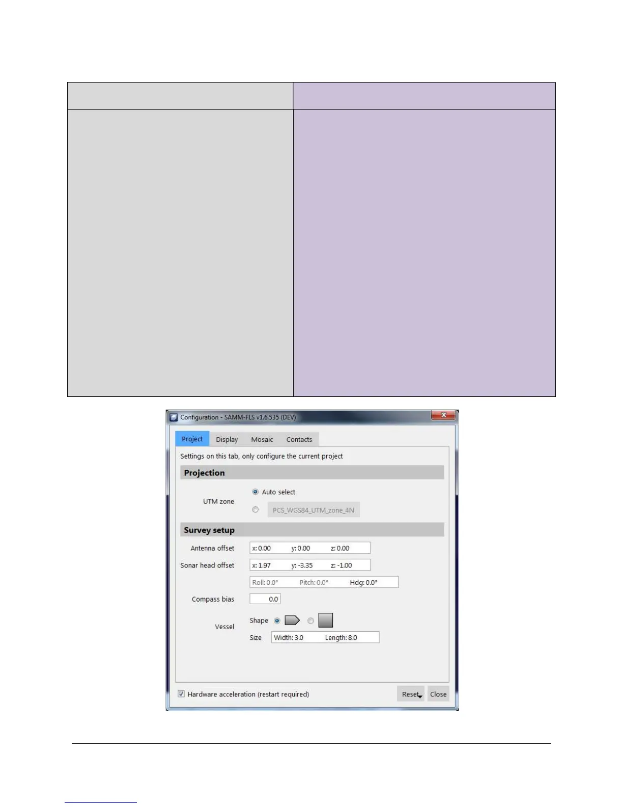 measured antenna and sonar offsets. Click