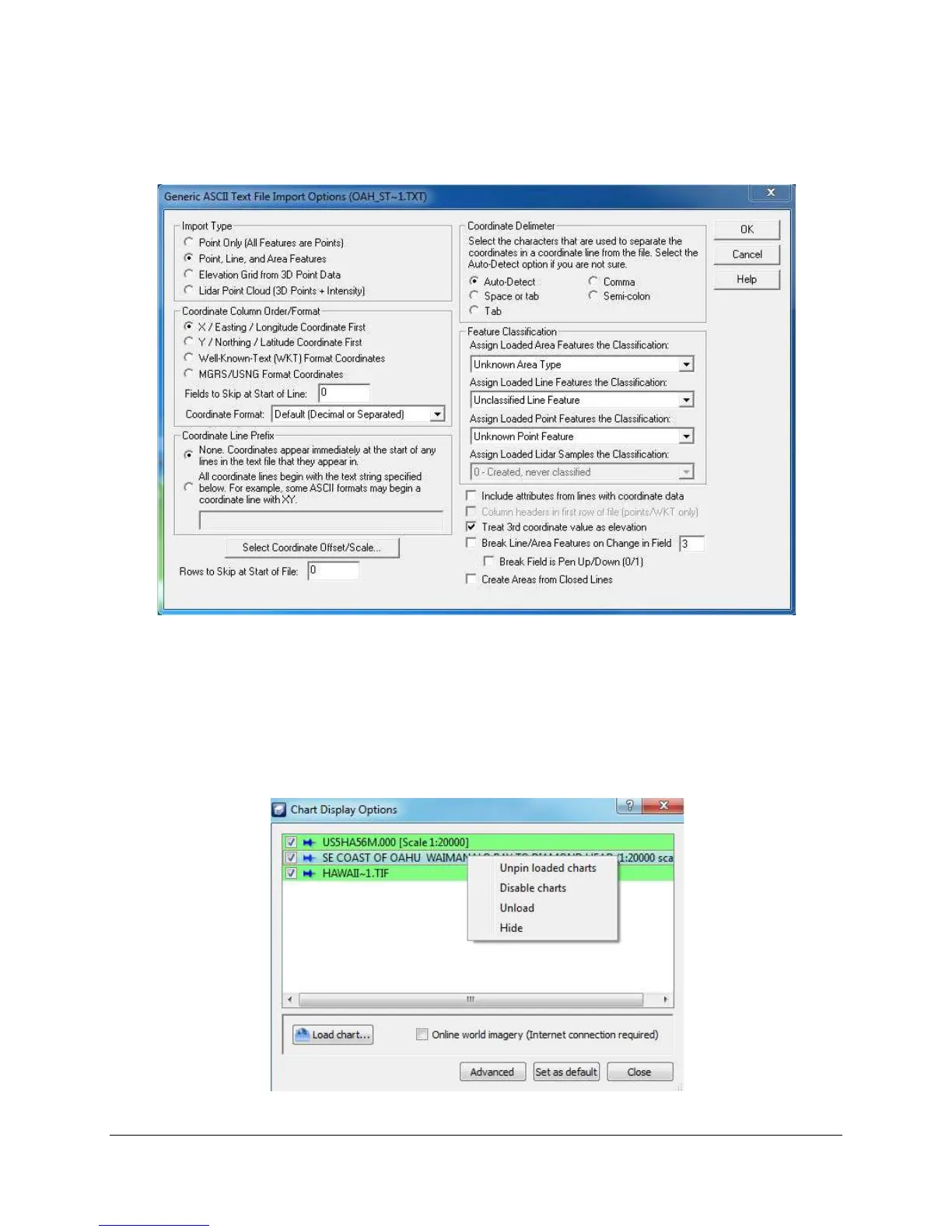 chart database. If you intentionally loaded the text file, specify the format of the text file using