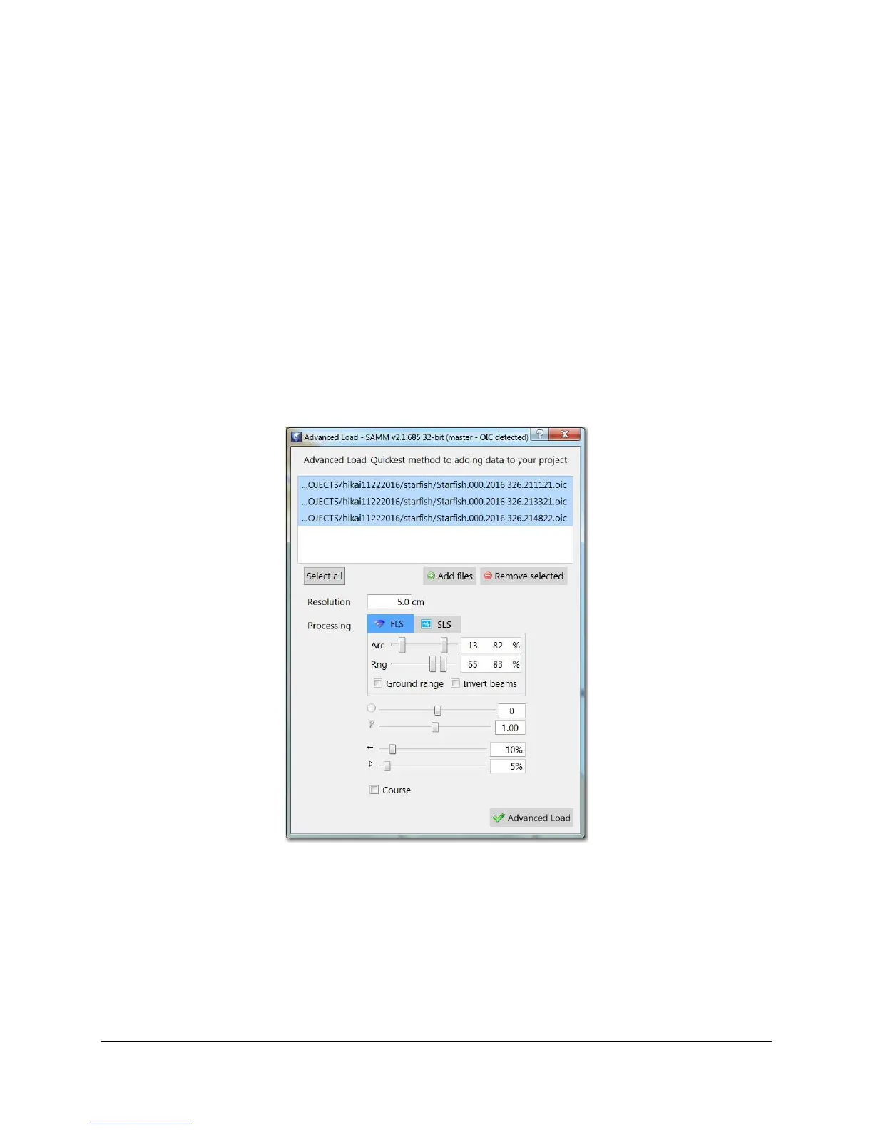 5. In the Advanced Load dialog, add more files or remove selected files as necessary.