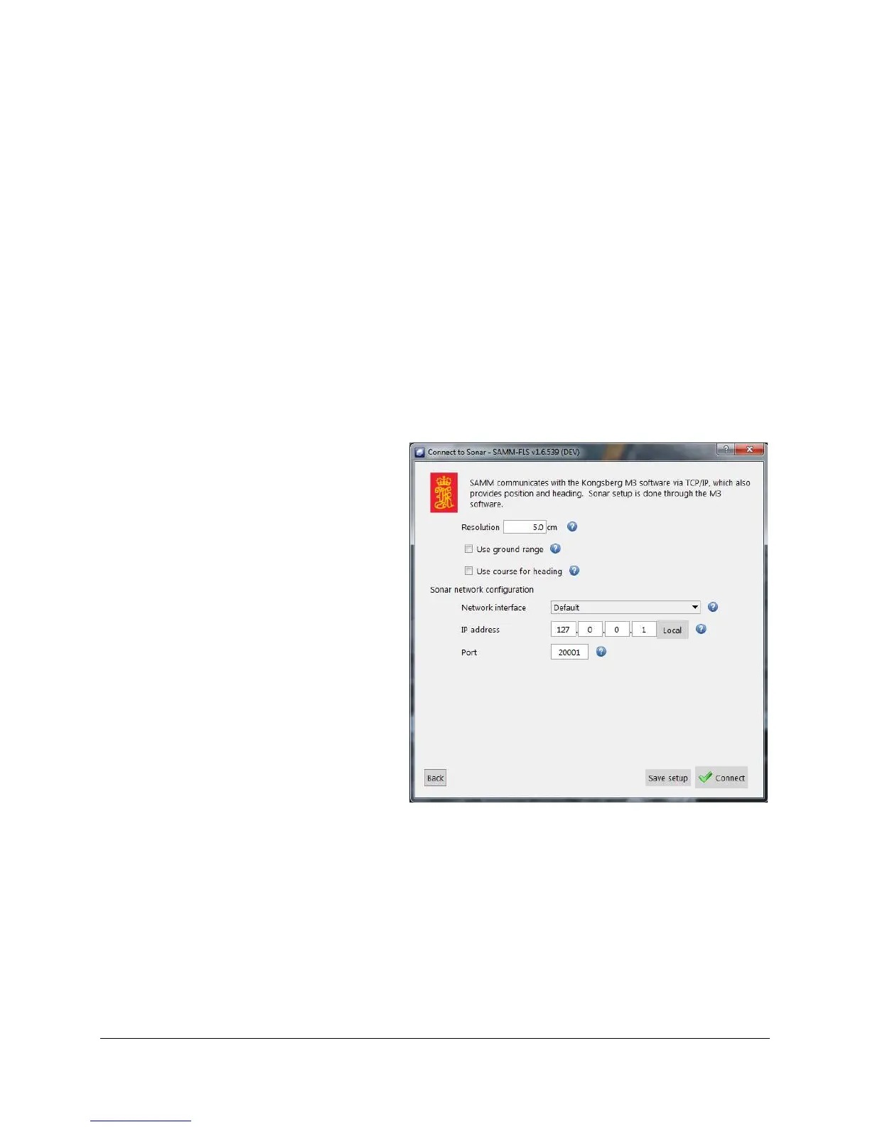 This section describes how to connect SAMM with each brand of supported imaging sonar and
