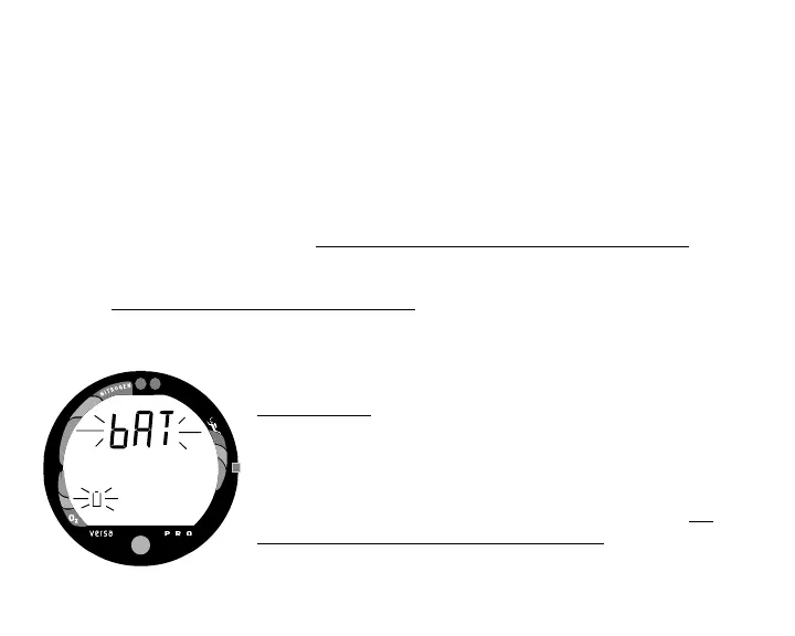 • If the button is not pressed to activate the unit prior to a dive, and a Low Battery Condi-
