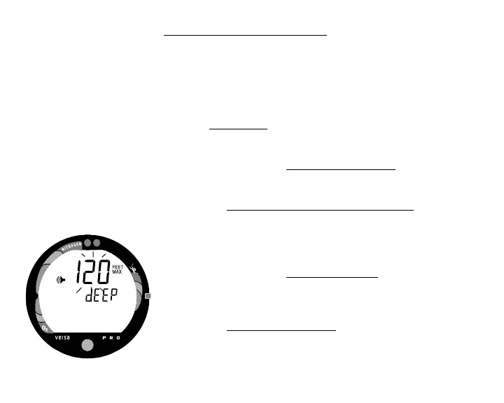 • The graphics FEET MAX and dEEP, and Alarm icon