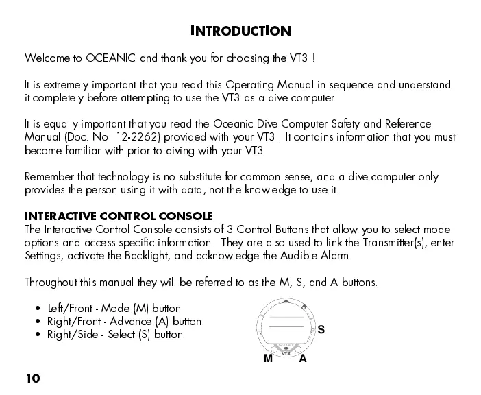 it completely before attempting to use the VT3 as a dive computer.