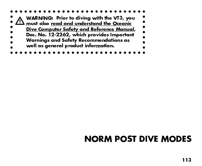 WARNING: Prior to diving with the VT3, you