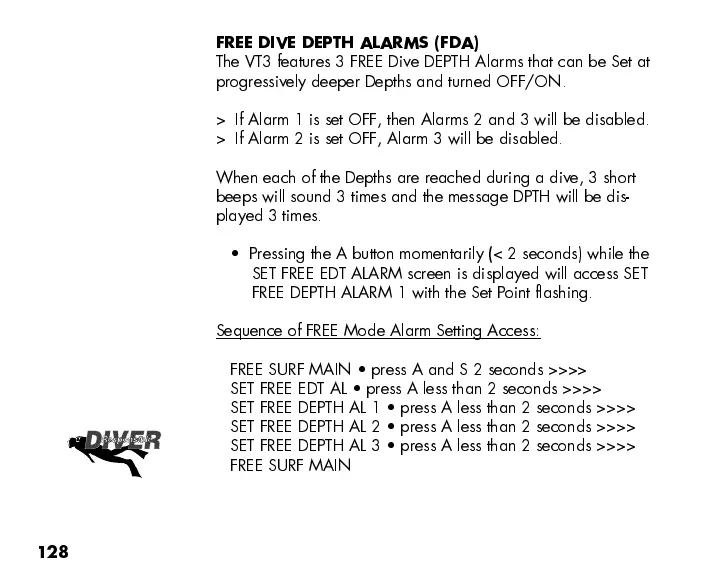 The VT3 features 3 FREE Dive DEPTH Alarms that can be Set at