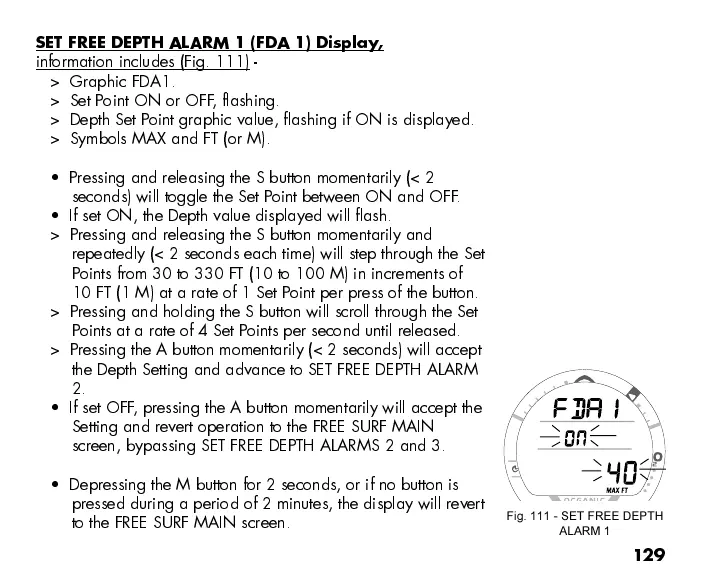 SET FREE DEPTH ALARM 1 (FDA 1) Display,