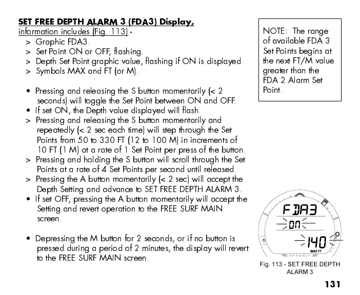 SET FREE DEPTH ALARM 3 (FDA3) Display,