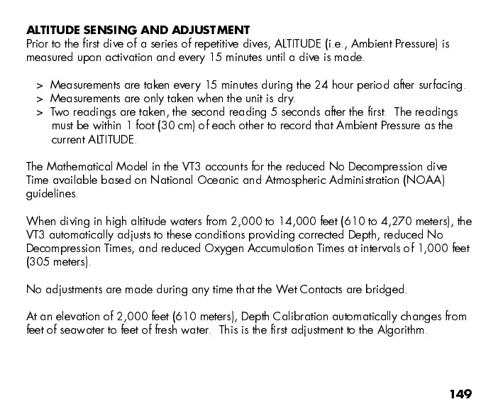 The Mathematical Model in the VT3 accounts for the reduced No Decompression dive