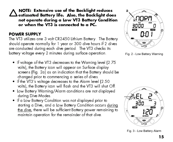 volts), the Battery icon will flash and the VT3 will shut Off.