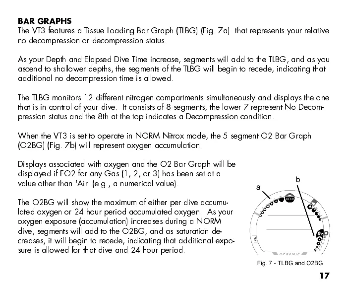 When the VT3 is set to operate in NORM Nitrox mode, the 5 segment O2 Bar Graph