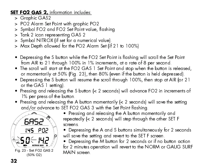 Depressing the S button while the FO2 Set Point is flashing will scroll the Set Point