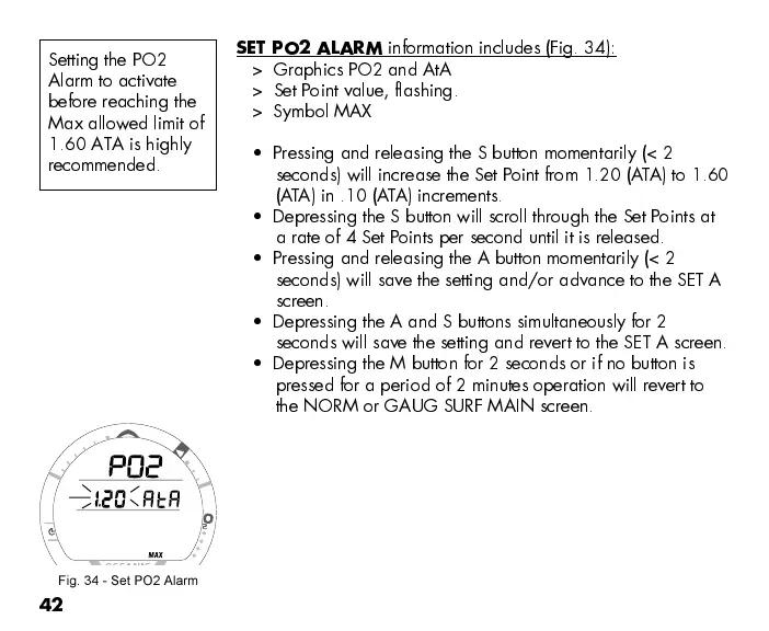 seconds) will increase the Set Point from 1.20 (ATA) to 1.60