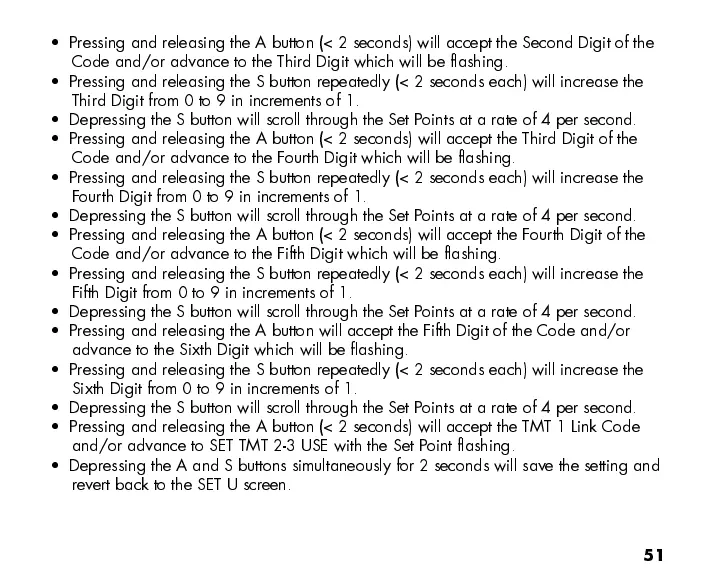 Pressing and releasing the A button (< 2 seconds) will accept the Second Digit of the