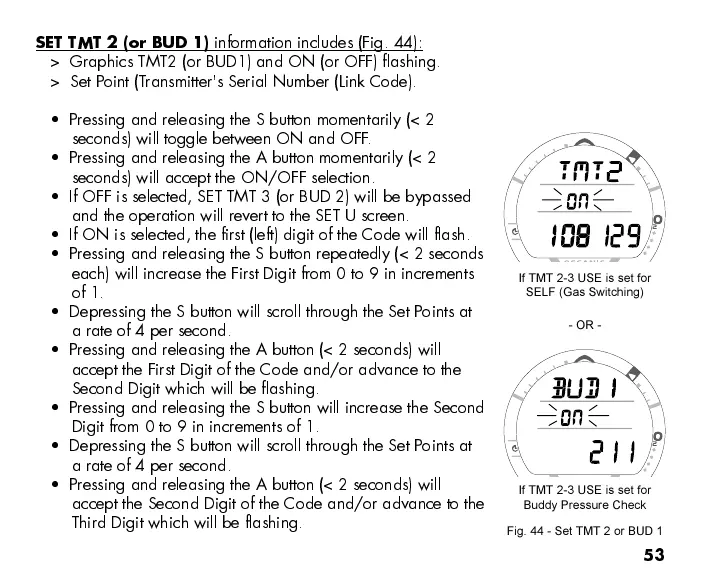> Graphics TMT2 (or BUD1) and ON (or OFF) flashing.
