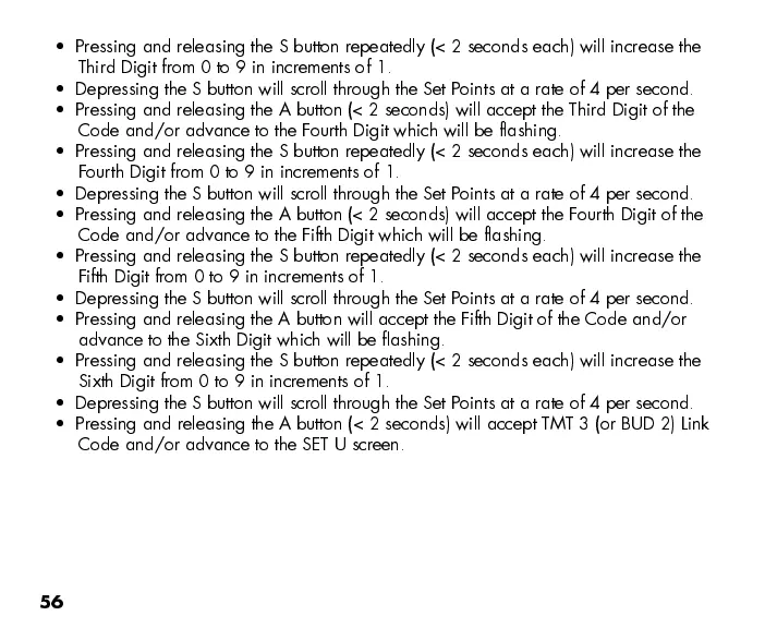 Depressing the S button will scroll through the Set Points at a rate of 4 per second.