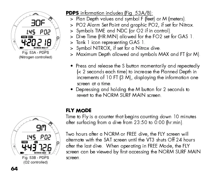 Two hours after a NORM or FREE dive, the FLY screen will